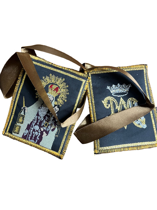 Very Large Our Lady of Mount Carmel Brown Scapular 3" x 4"