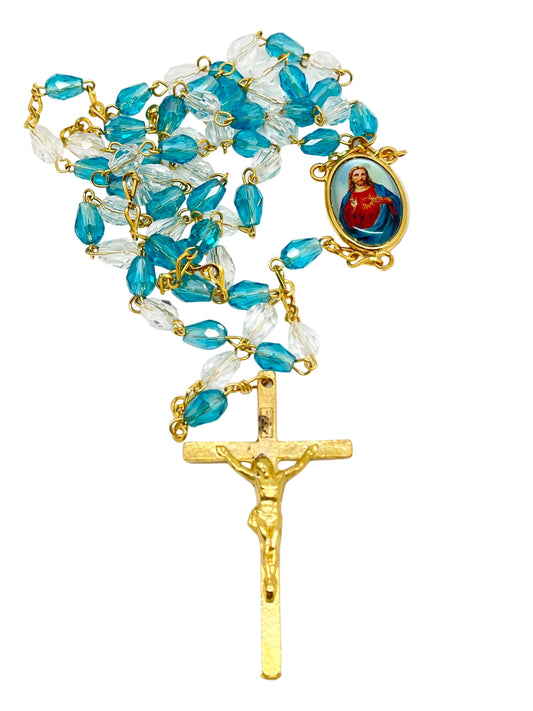 Sacred Heart of Jesus Rosary Detente Clear and Blue Crystal Rosary