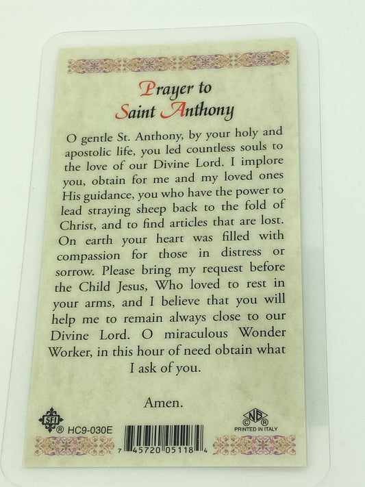 St. Anthony Laminated Holy Card (Plastic Covered)
