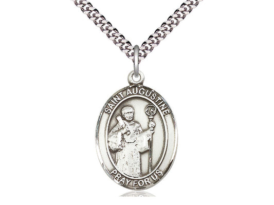 Sterling Silver St Augustine Pendant on a 24 inch Light Rhodium Heavy Curb Chain