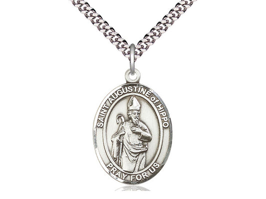 Sterling Silver St Augustine of Hippo Pendant on a 24 inch Light Rhodium Heavy Curb Chain