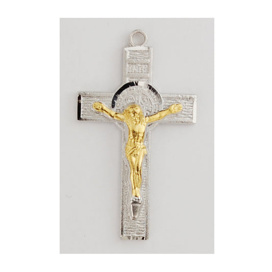 Sterling Silver and Gold Filled Two Tone Crucifix (1 1/8")