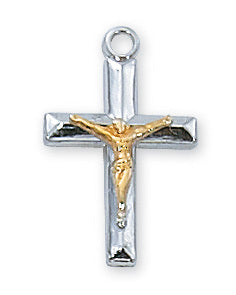 Sterling Silver and Gold Filled Two Tone Crucifix (1")