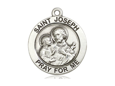 Sterling Silver St. Joseph Medal 1' with chain and velvet bag