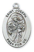 Sterling Silver St. Joseph Medal 24"Light Rhodium Heavy Curb Chain