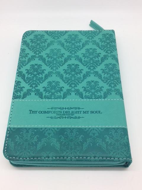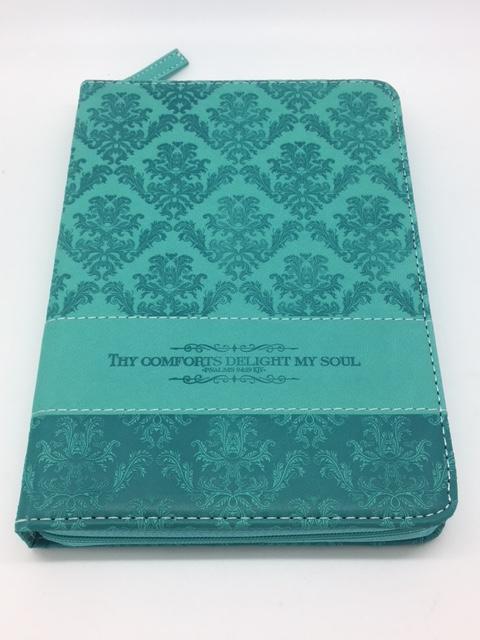 "Delightful" Zippered Journal with Scripture Passage Pages Teal-Green (Psalms 94:19)