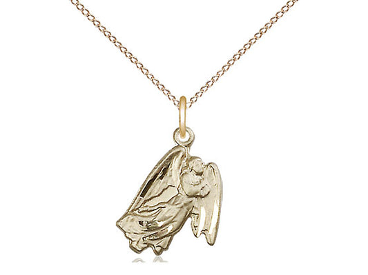 14kt Gold Filled Guardian Angel Pendant on a 18 inch Gold Filled Light Curb Chain