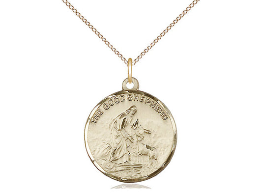 14kt Gold Filled Good Shepherd Pendant on a 18 inch Gold Filled Light Curb Chain