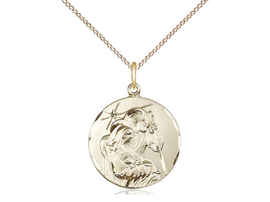 14kt Gold Filled Holy Family Pendant on a 18 inch Gold Filled Light Curb Chain