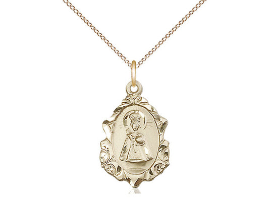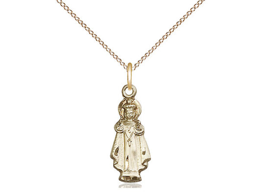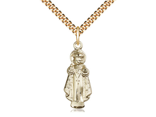 14kt Gold Filled Infant of Prague Pendant on a 18 inch Gold Filled Light Curb Chain