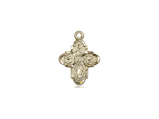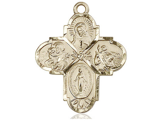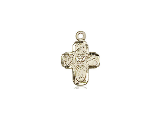 14kt Gold Filled 4-Way Pendant on a 24 inch Gold Plate Heavy Curb Chain.