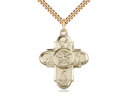 14kt Gold Filled Our Lady 5-Way Pendant on a 24 inch Gold Plate Heavy Curb Chain