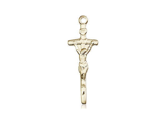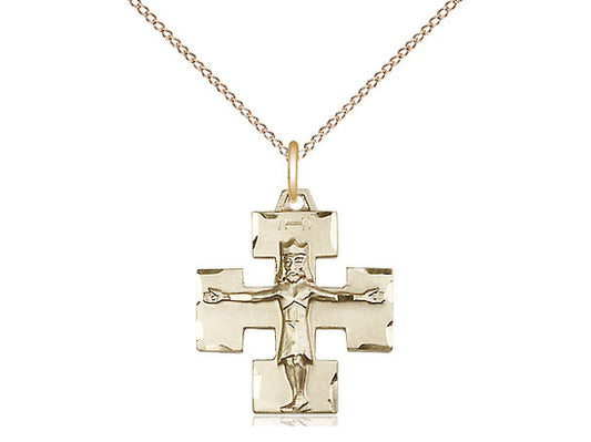 14kt Gold Filled Modern Crucifix Pendant on a 18 inch Gold Filled Light Curb Chain