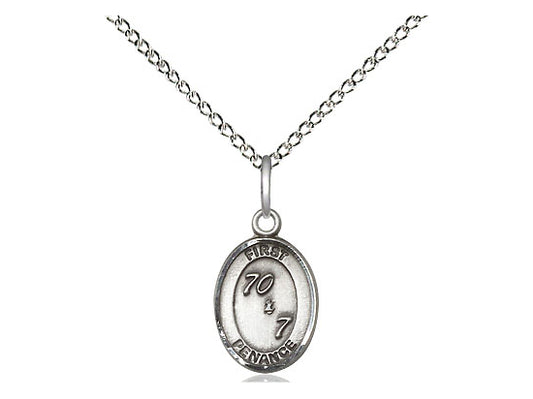 Sterling Silver First Penance Pendant on a 18 inch Sterling Silver Light Curb Chain