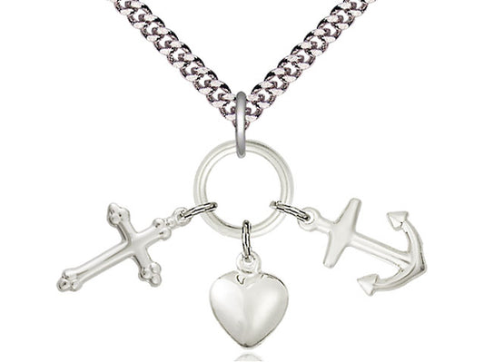 Sterling Silver Faith, Hope & Charity Pendant on a 18 inch Sterling Silver Light Curb Chain