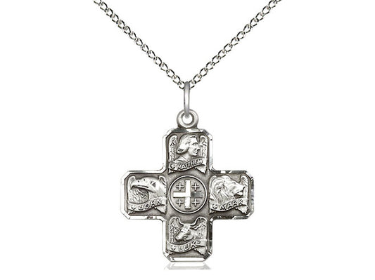 Sterling Silver Evangelist Pendant on a 18 inch Sterling Silver Light Curb Chain