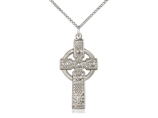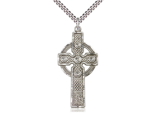 Sterling Silver Kilklispeen Cross Pendant on a 24 inch Light Rhodium Heavy Curb Chain