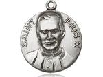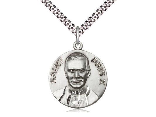 Sterling Silver Pope Pius X Pendant on a 18 inch Sterling Silver Light Curb Chain.