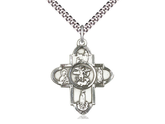 Sterling Silver Our Lady 5-Way Pendant on a 24 inch Light Rhodium Heavy Curb Chain