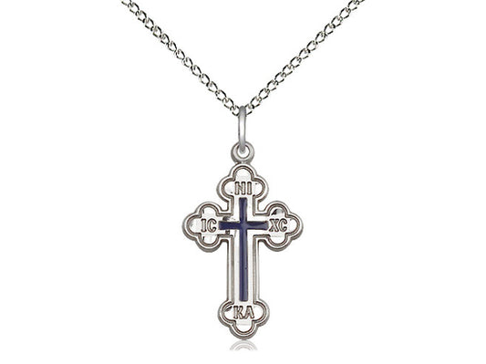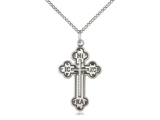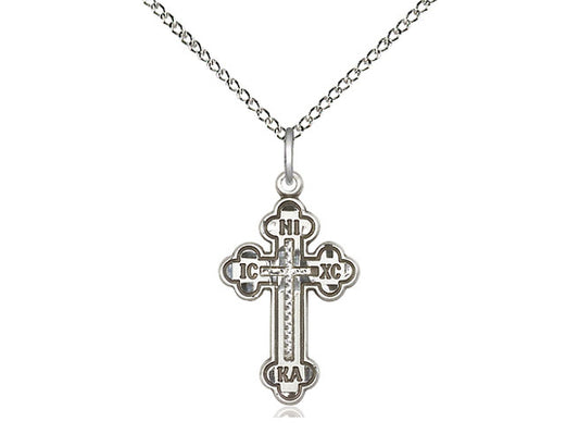 Sterling Silver Russian Cross Pendant on a 18 inch Sterling Silver Light Curb Chain