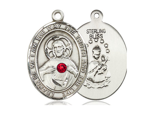 Sterling Silver Scapular Pendant with Ruby Swarovski Stone