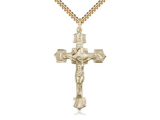 14kt Gold Filled Crucifix Pendant on a 24 inch Gold Plate Heavy Curb Chain