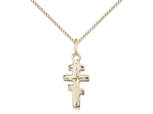 14kt Gold Filled Greek Orthadox Cross Pendant on a 18 inch Gold Filled Light Curb Chain