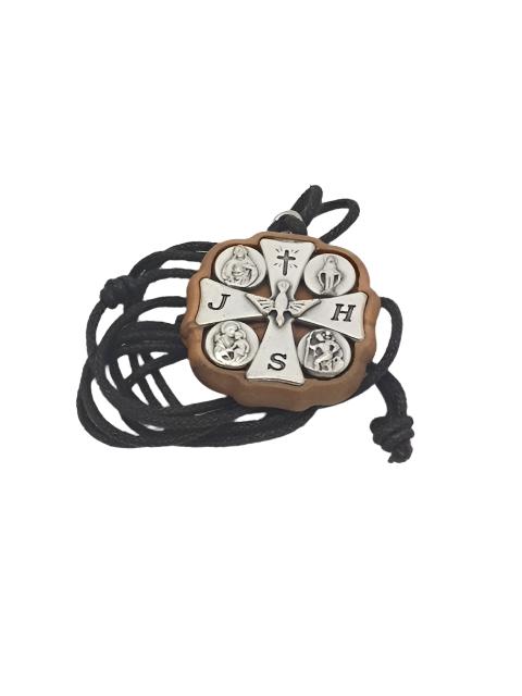 Black Cord and Hematite Beads Bracelet with Miraculous Medal and Cross