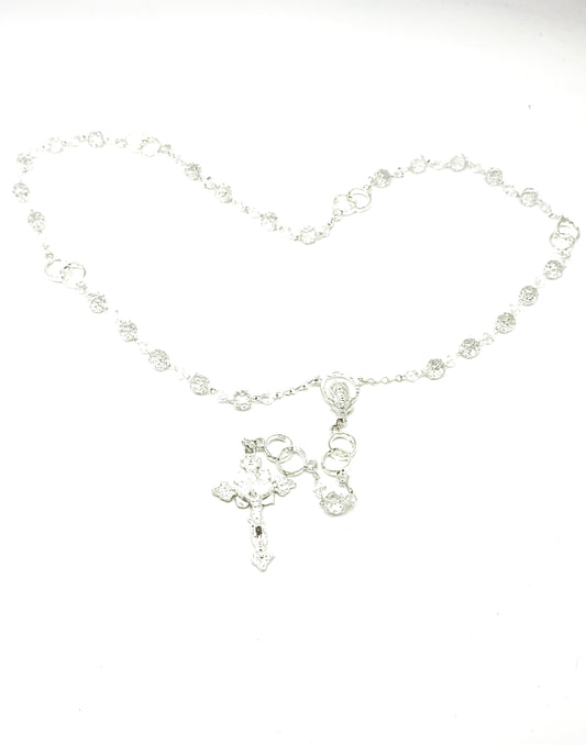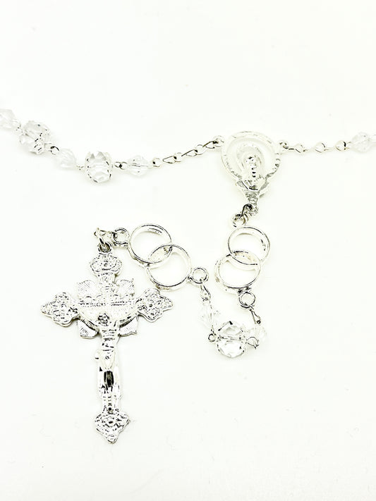 Clear Crystal Lasso Wedding Rosary with Silver-tone Accents 10MM