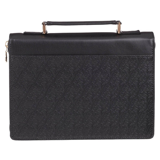 I Know the Plans Black Floral Faux Leather Fashion Bible Cover - Jeremiah 29:11 Medium