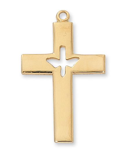 Gold over Sterling Silver Cross with Holy Spirit Cutout 1 5/16" on chain, box and bag