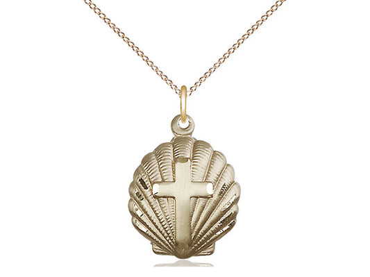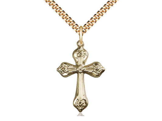 14kt Gold Filled Cross Pendant on a 18 inch Gold Filled Light Curb Chain