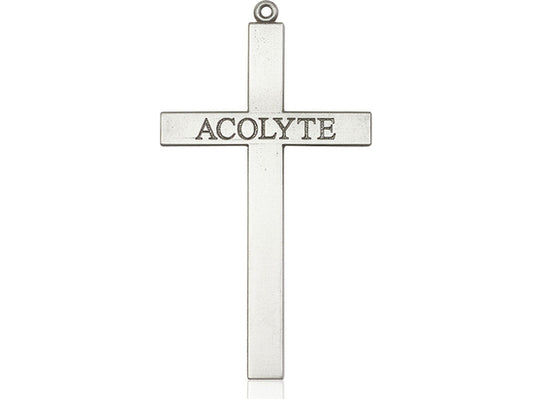 Sterling Silver Acolyte Cross Pendant on a 24 inch Light Rhodium Heavy Curb Chain