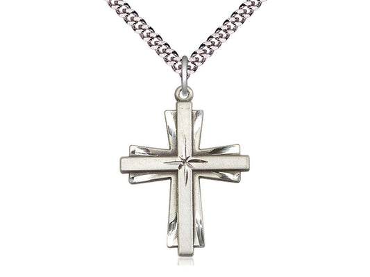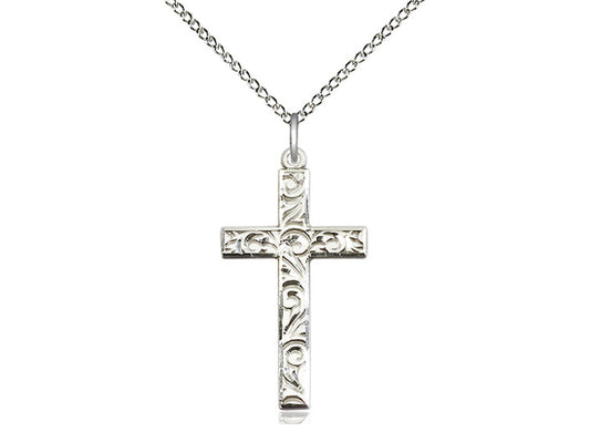 Sterling Silver Cross Pendant on a 24 inch Light Rhodium Heavy Curb Chain