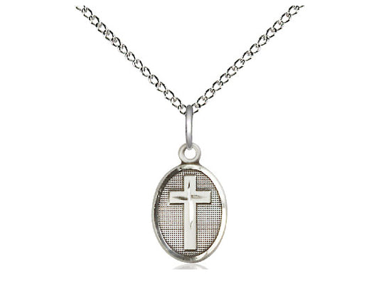 Sterling Silver Cross Dog Tag Pendant on a 18 inch Sterling Silver Light Curb Chain