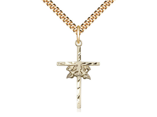 14kt Gold Filled Doves Cross Pendant on a 24 inch Gold Plate Heavy Curb Chain