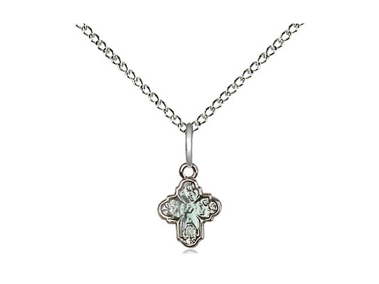 Sterling Silver Doves Cross Pendant on a 18 inch Sterling Silver Light Curb Chain