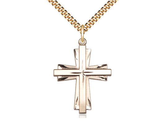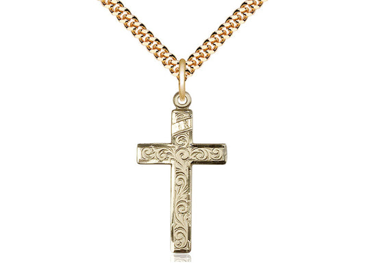 14kt Gold Filled Cross Pendant on a 24 inch Gold Plate Heavy Curb Chain