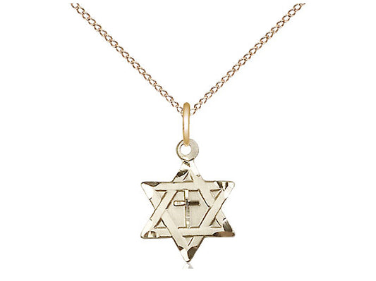 14kt Gold Filled Star of David w/ Cross Pendant on a 18 inch Gold Filled Light Curb Chain