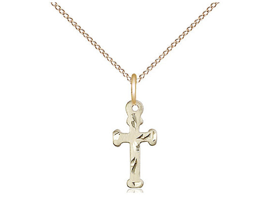 14kt Gold Filled Cross Pendant on a 18 inch Gold Filled Light Curb Chain