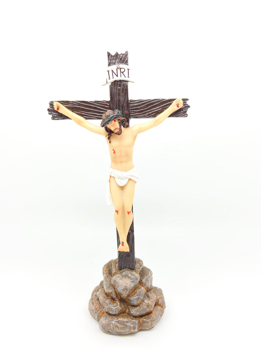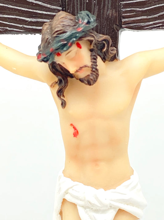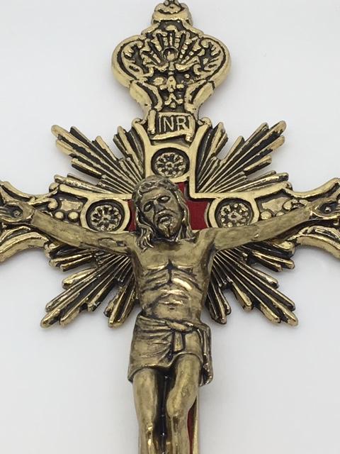 Victorian Style Crucifix in Oak and Antique Gold Finish 10.25"H