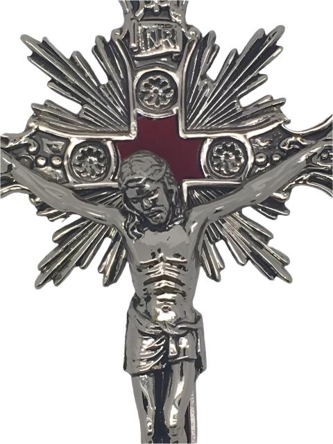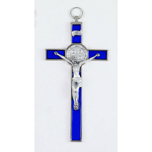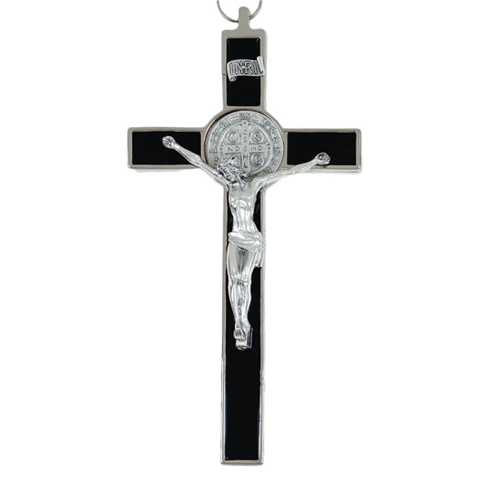 Walnut St. Benedict Wall Crucifix with Antique Pewter Corpus (12")