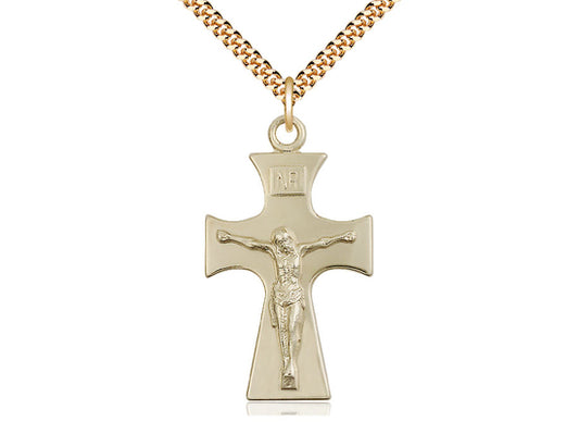 14kt Gold Filled Celtic Crucifix Pendant on a 24 inch Gold Plate Heavy Curb Chain