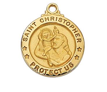 Blue Enamel over Sterling Silver Saint Christopher Round Medal with chain