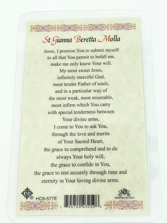 St. Gianna Beretta Laminated Holy Card (Plastic Covered)