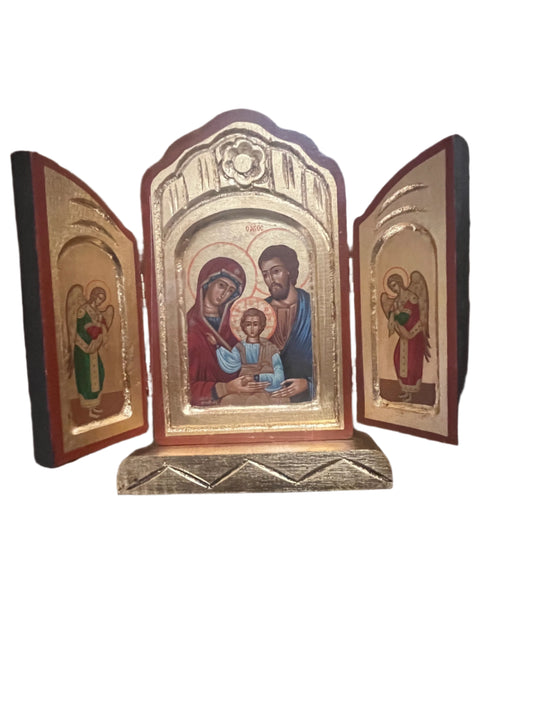 Golden Holy Family Triptych with Scenes on Doors 12.25"