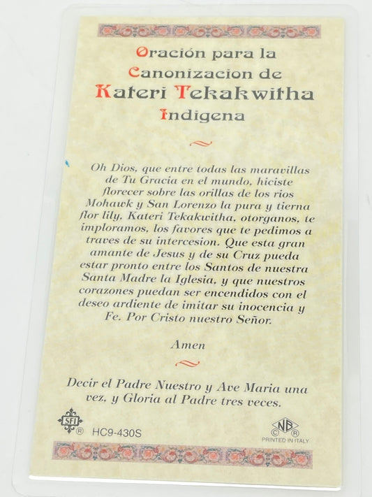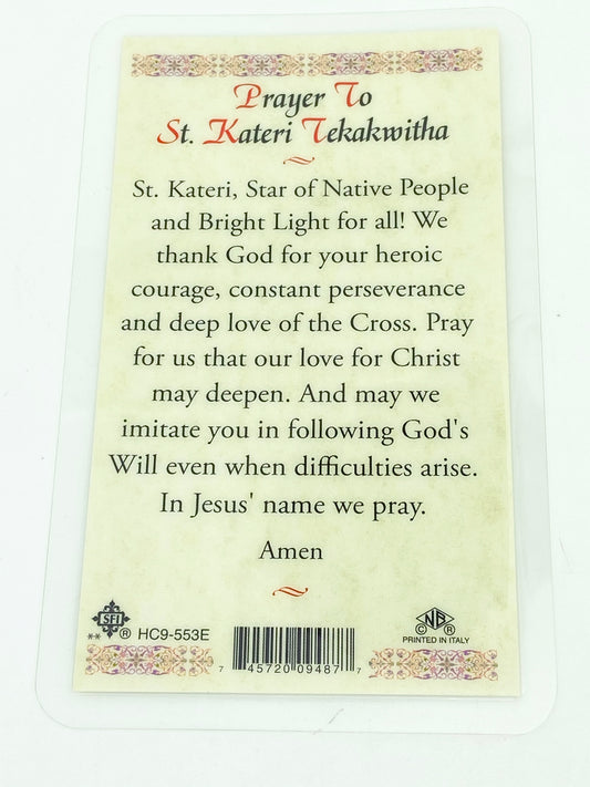 Saint Kateri Tekakwitha Laminated Holy Card (Plastic Covered)