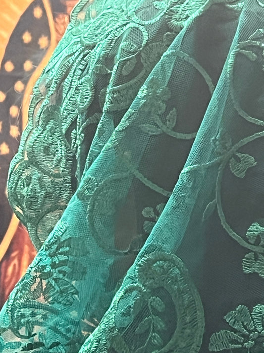 Deep Green Lace Mantilla Chapel Spanish Veil 51"