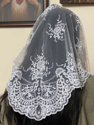 Arabic Blue Lace Infinity Francisca Chapel Spanish Veil 31" x 36"
