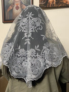 Grey and Pink Lilian Lace Mantilla Chapel Spanish Veil 51"